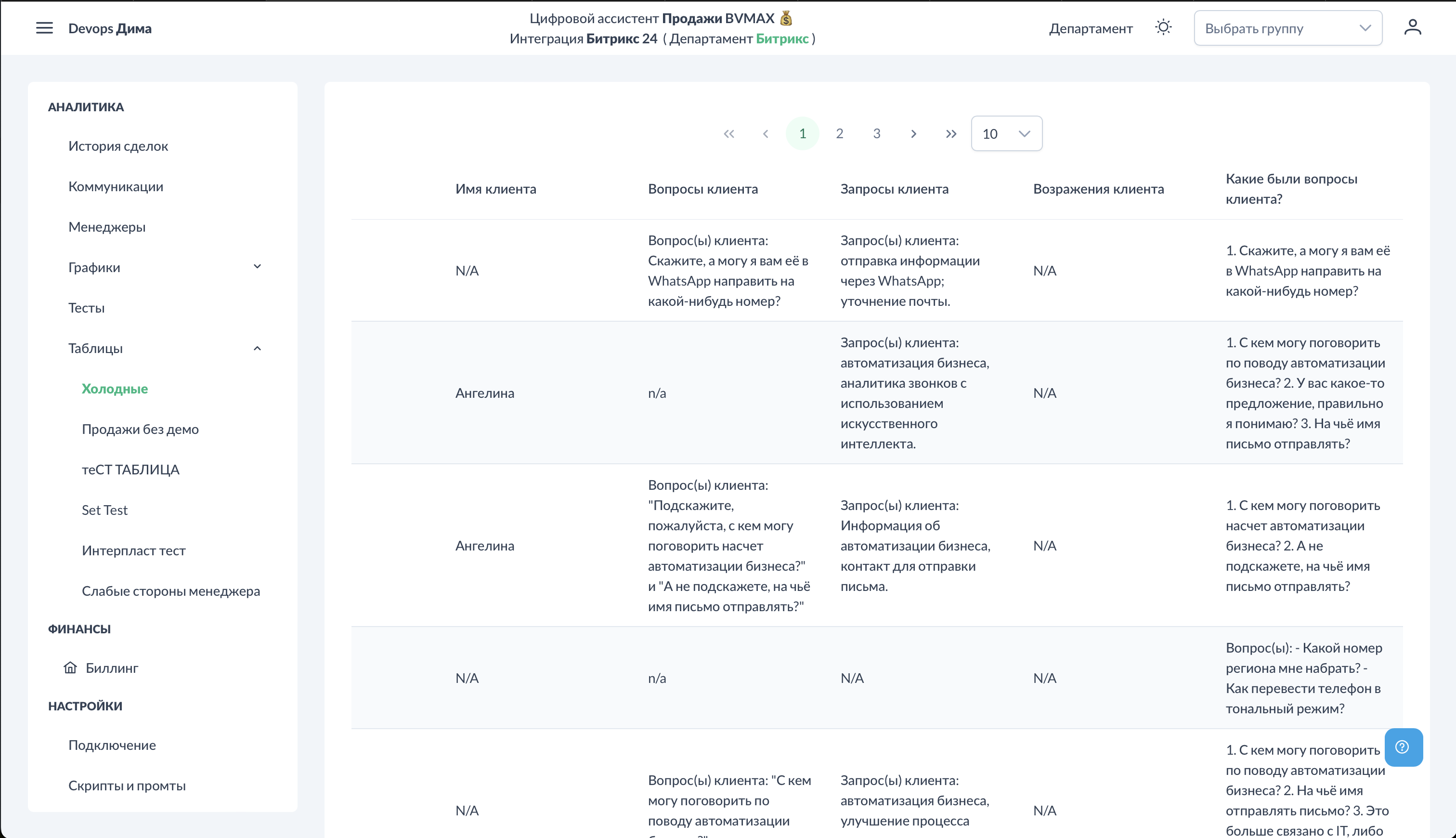 - Аналитика - Коммуникации — детали звонков